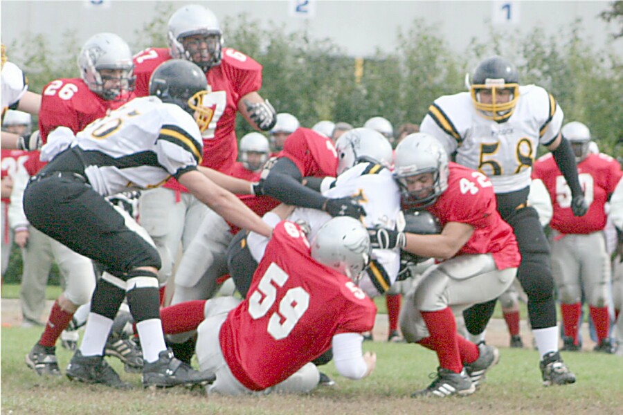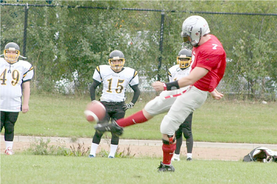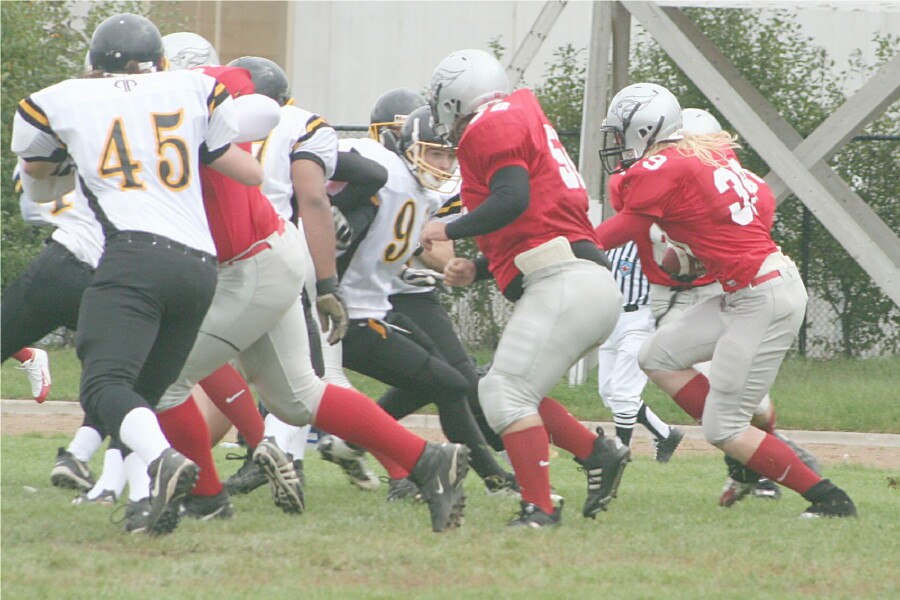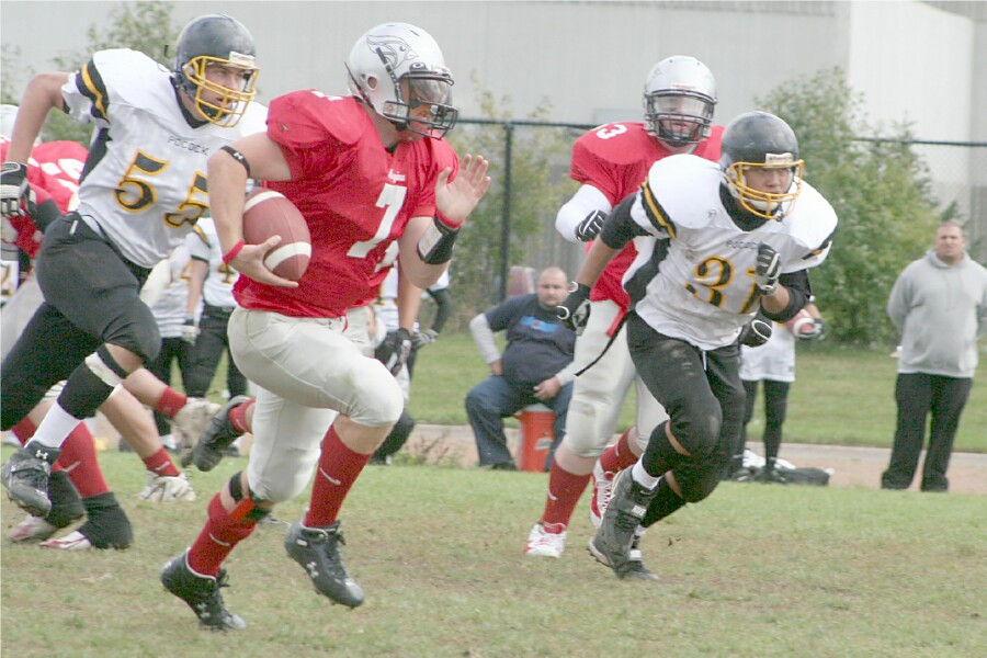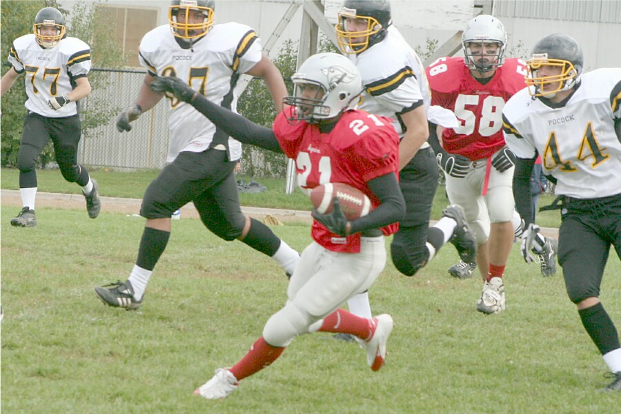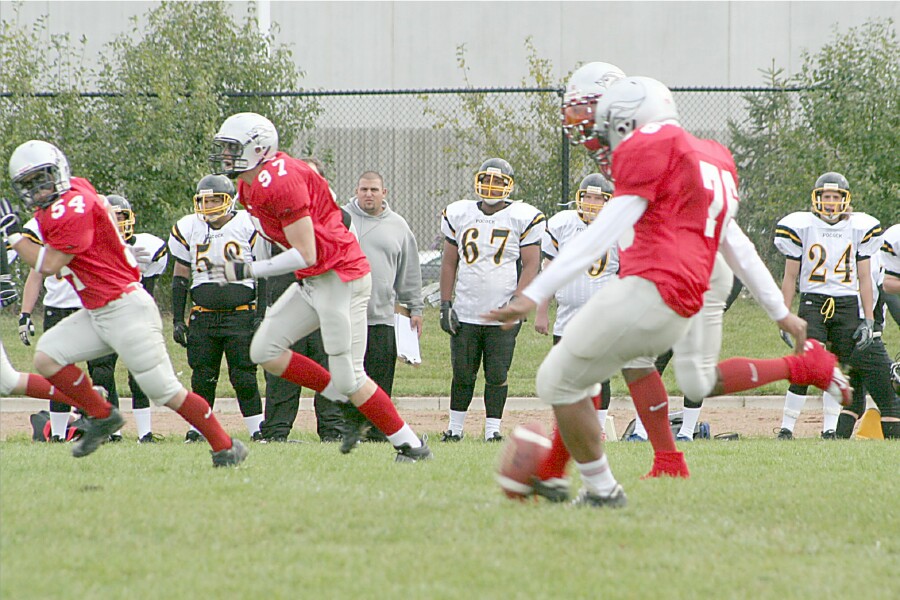 Senior Boys Football September 29, 2006 The defending Region Of Peel Tier One Champions faced the Phillip Pocock Pirates in their second game, and efficiently defeated the Pirates 28-7 at Cardinal Stadium. The team is now 1-1 in league play. These pictures were taken from the Pocock game. |