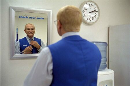 first notices Sy's "sadness", and Gary Cole as the boss whose view of Sy is that of