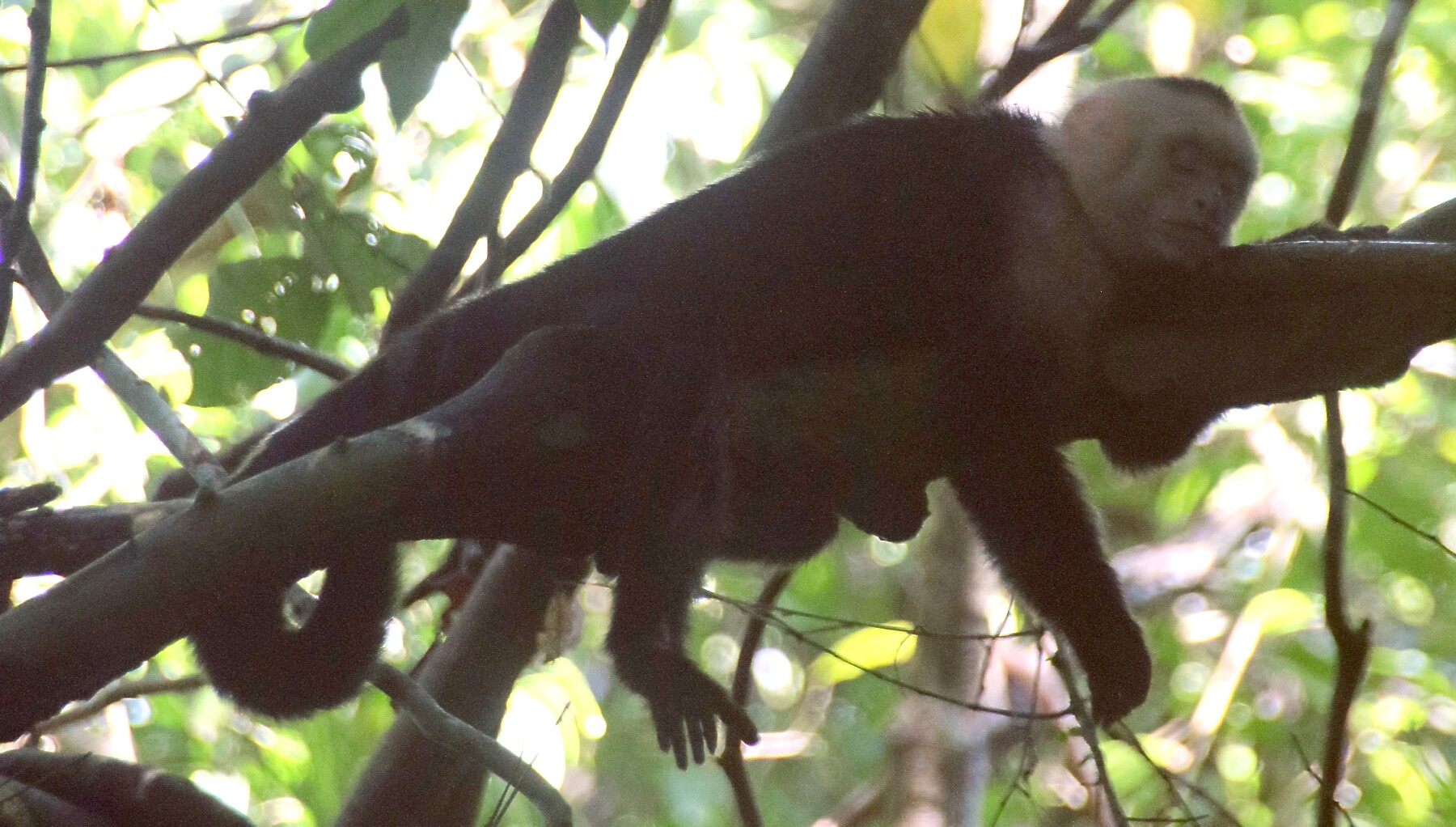 Above: A Capuchin monkey rest on a tree branch.