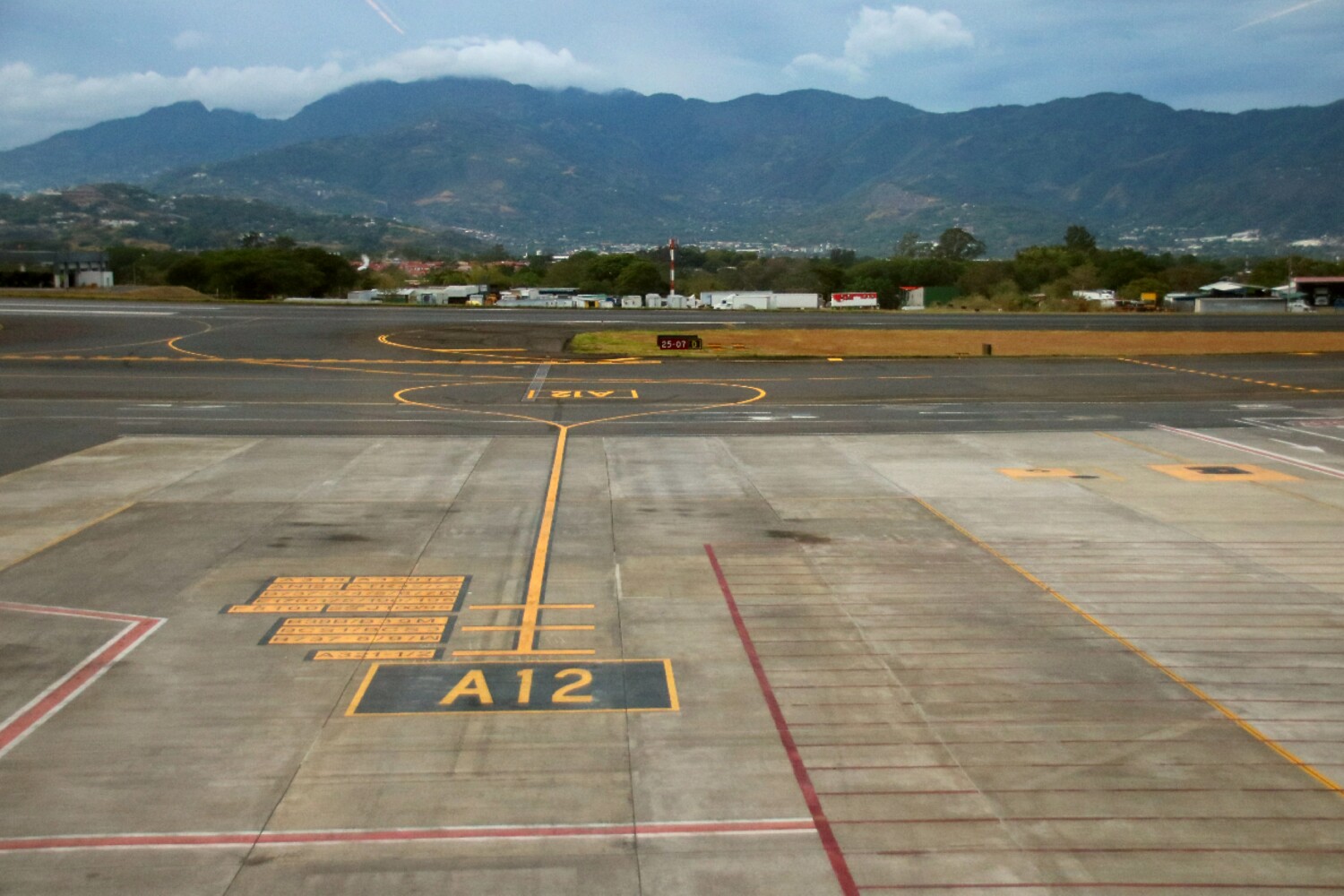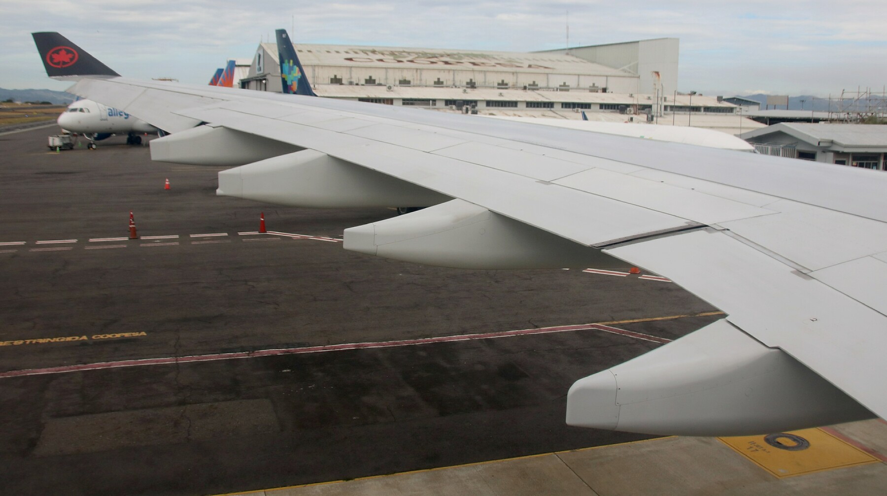 Above: Our plane taxis to the runway at the San Jose airport, which actually is not in San Jose, actually not in the same province either.