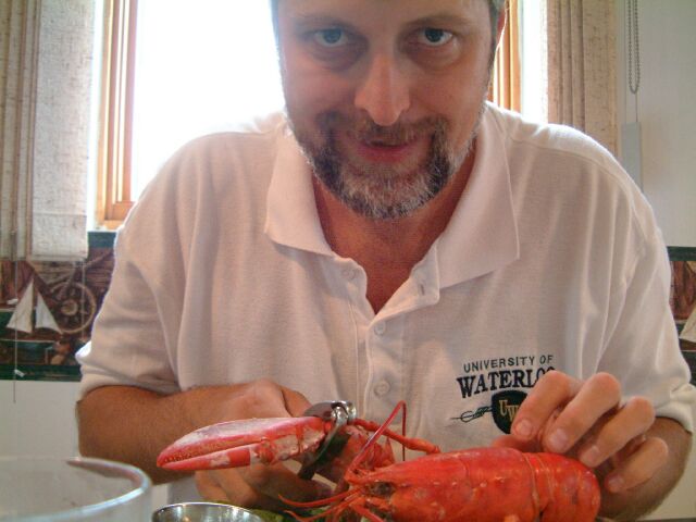 Dr. J chowing down on fresh Bay of Fundy lobster