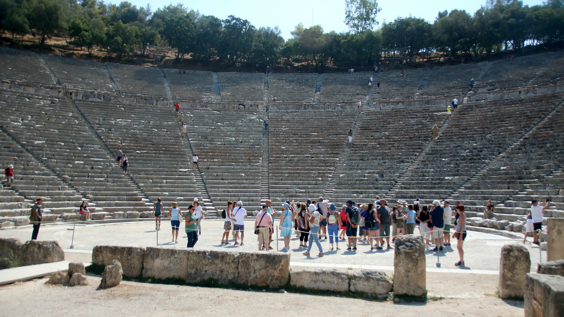 Above: Ancient Theatre of Epidaurus, built in the 4th century BC, with acoustics such that people at the top of the theatre can hear the group at the bottom talking.