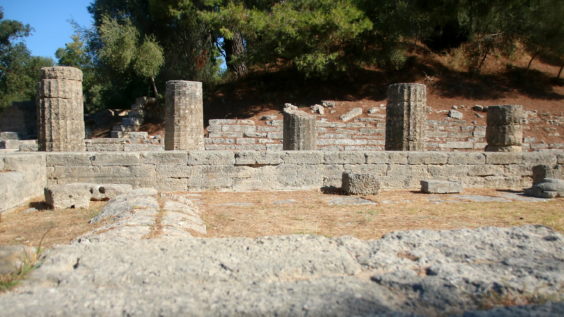 Above: In Ancient Olympia, ruins in the Temple of Zeus.