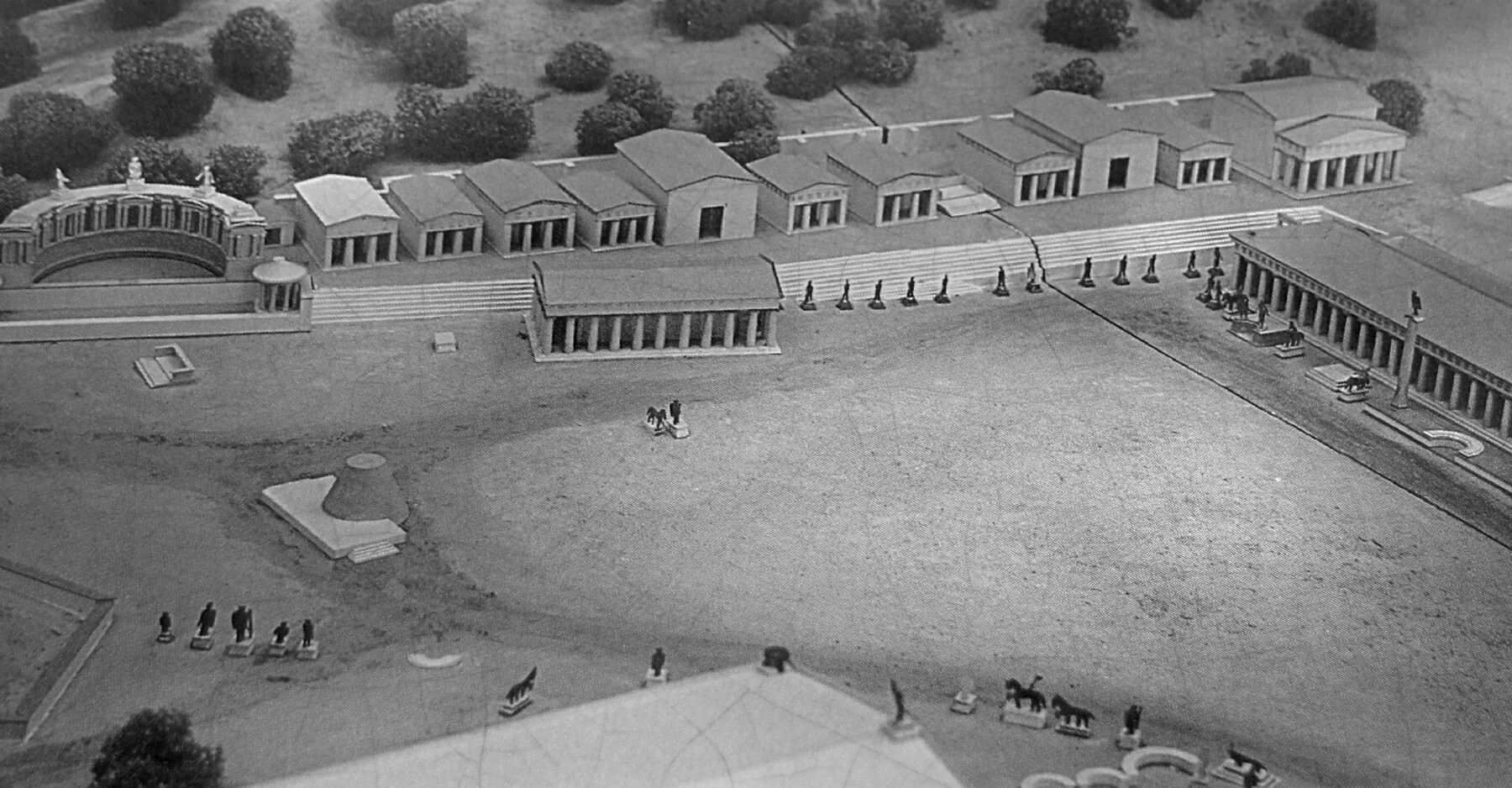 Above: Model of Ancient Olympia, with the treasuries at the back, and the Metroon Temple, dedicated to mother goddesses, in the foreground.