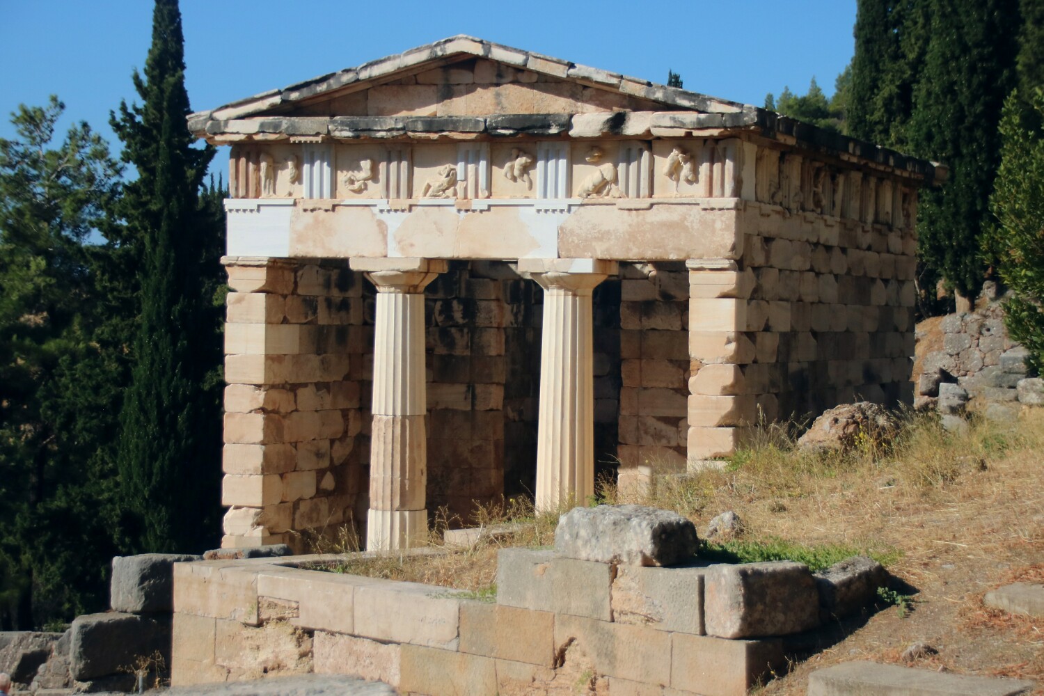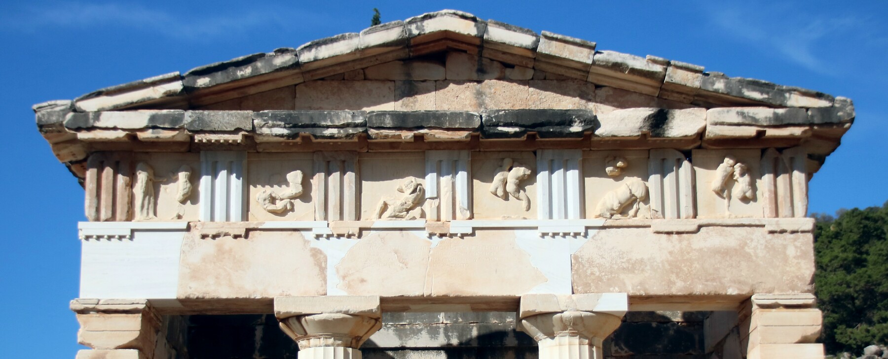 Above: The top face of the Treasury of the Athenians, one of many treasuries that Greek states used to store their money and valuables.