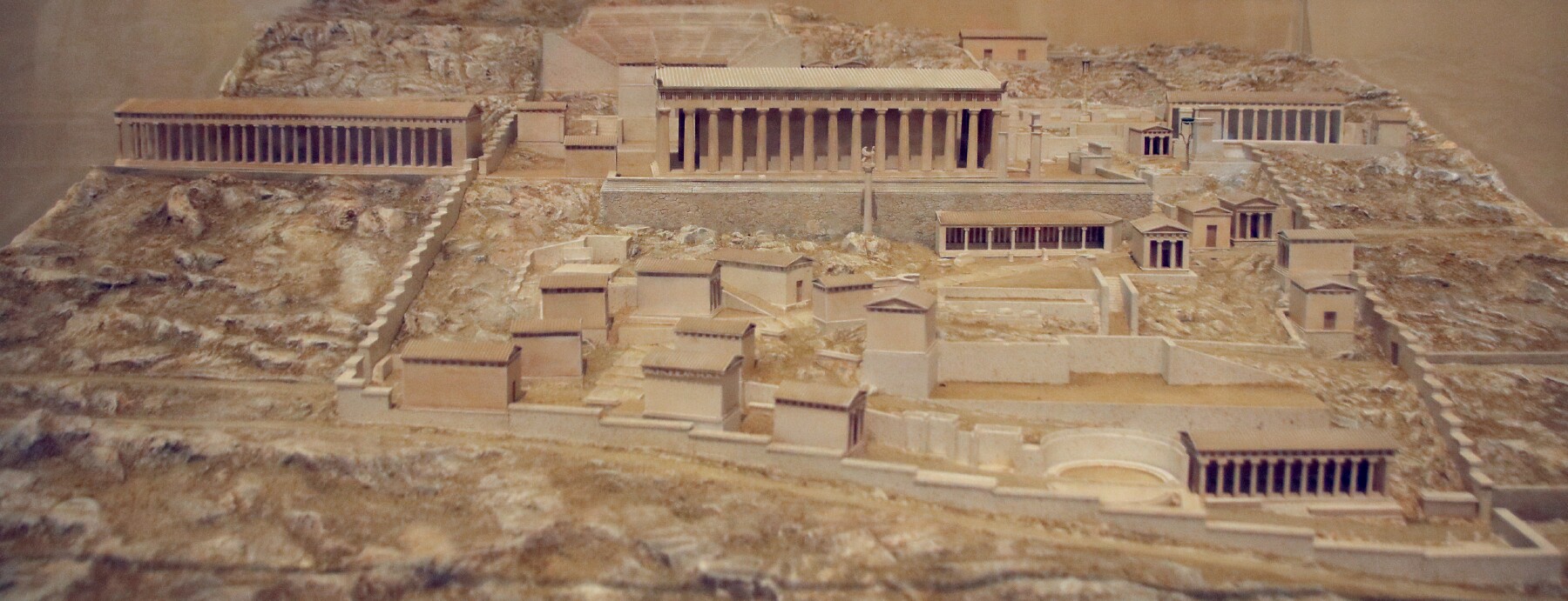 Above: At the Delphi Archaeological Museum. a model of the Ancient Delphi sanctuary.