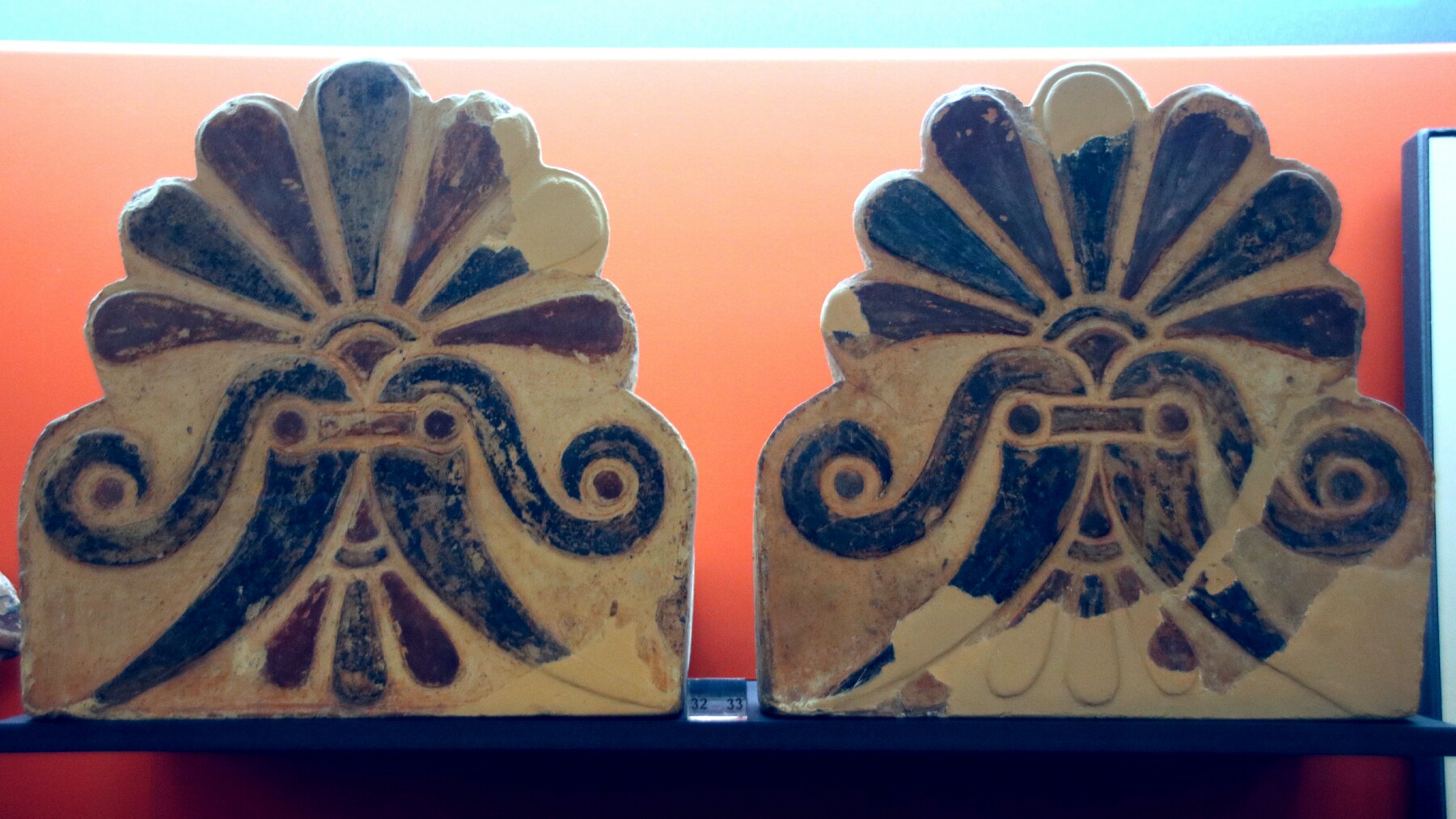 Above: In the museum, two matching steles found in Delphi.