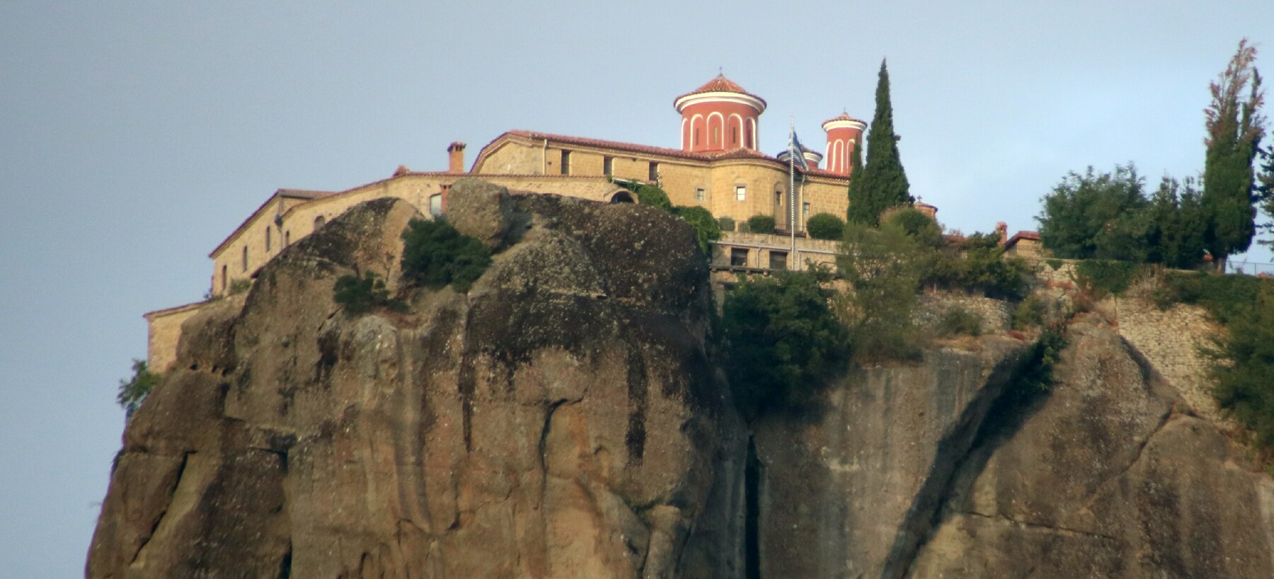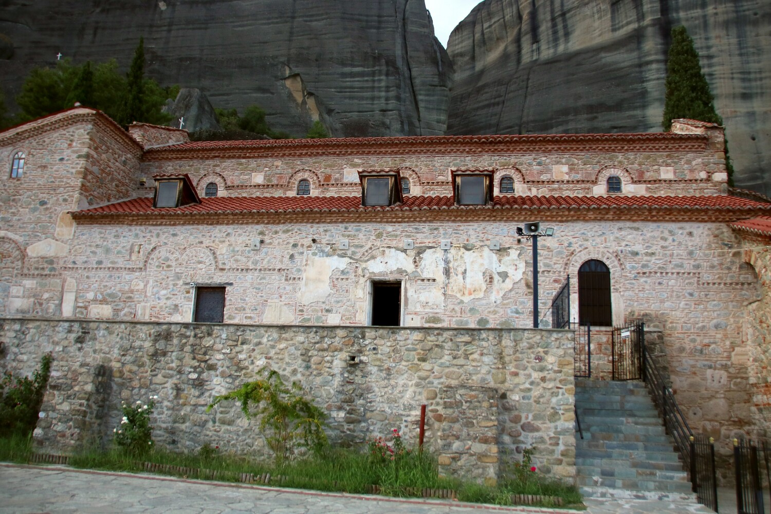 Above: In Kalabaka, Greece, the Meteora mountains and the Agios Stefanos Monastery.