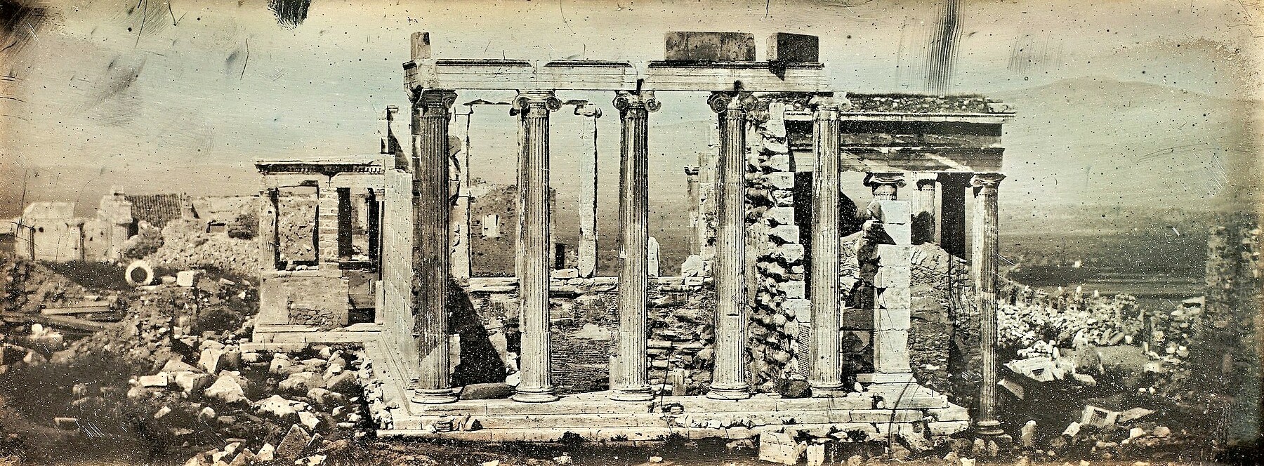 Above: An ancient drawing of what the Erechtheion looked like when archaeologists found it in the 1800's.