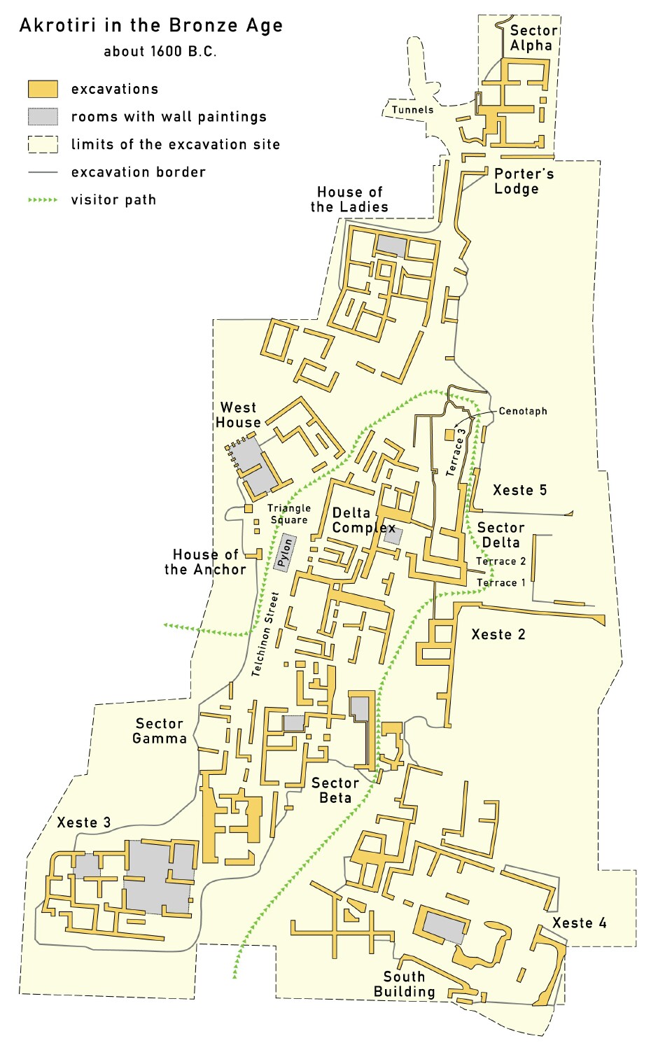 Above: Ruins of east central Akrotiri in the Beta sector.