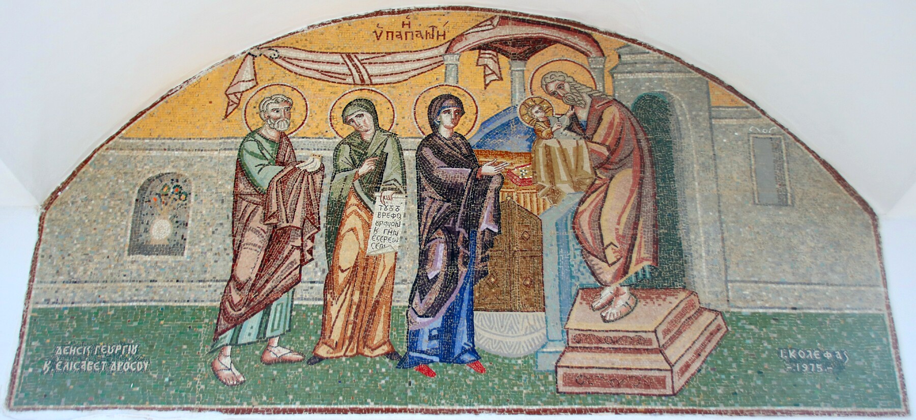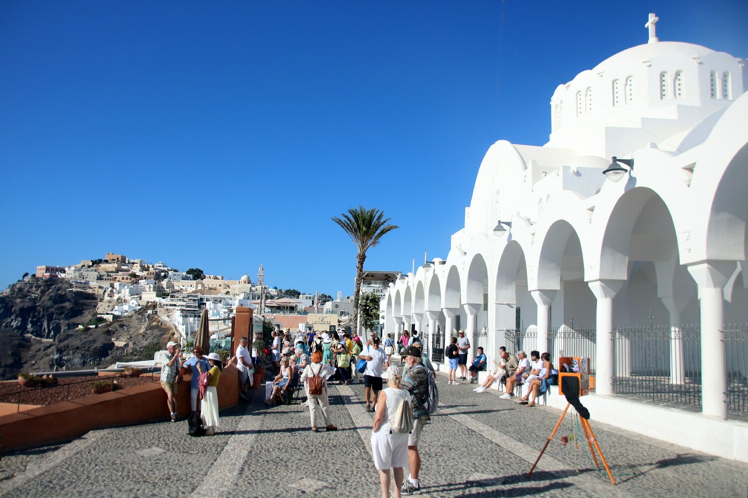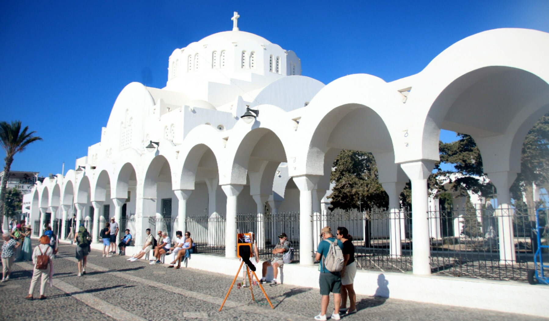Above: The Metropolitan Church of the Presentation of the Lord on Fira's main street, with the painting above its entrance.