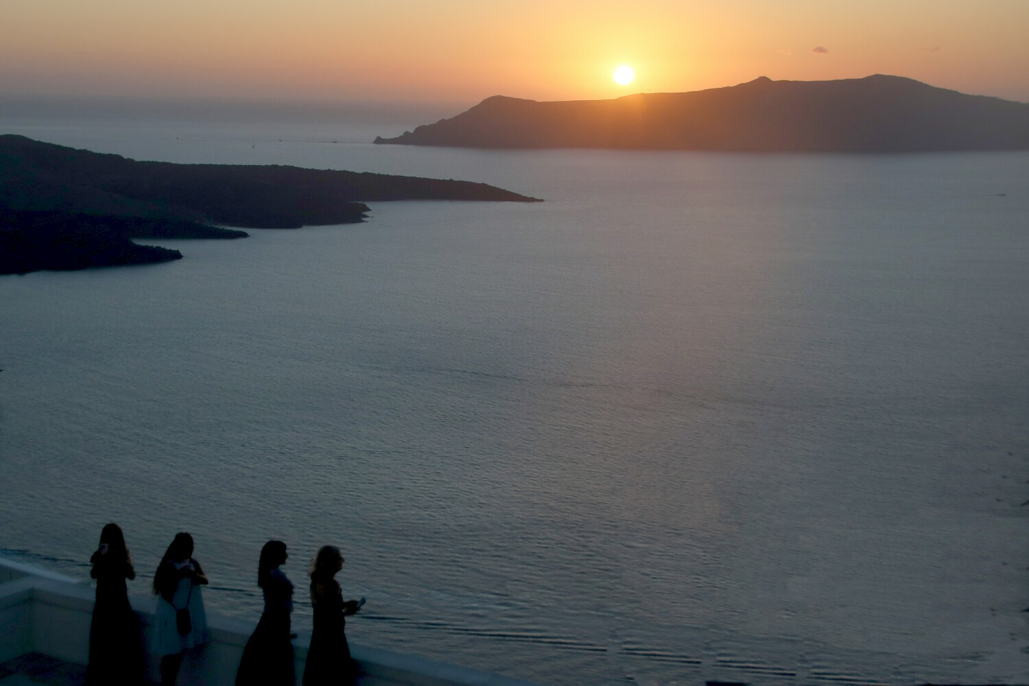 Above: Sunset at Fira overlooking the caldera. In the heart of summer, Fira to Imerovigli, is usually 2 or 3 deep with people watching. In September, only 1 person deep ... yes, so much better.