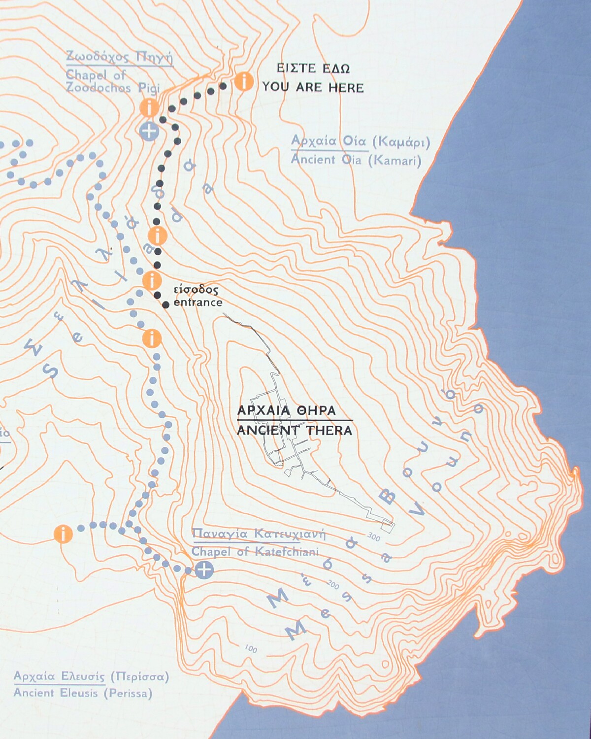 Above: View of step farming on the esastern coast of Santorini.