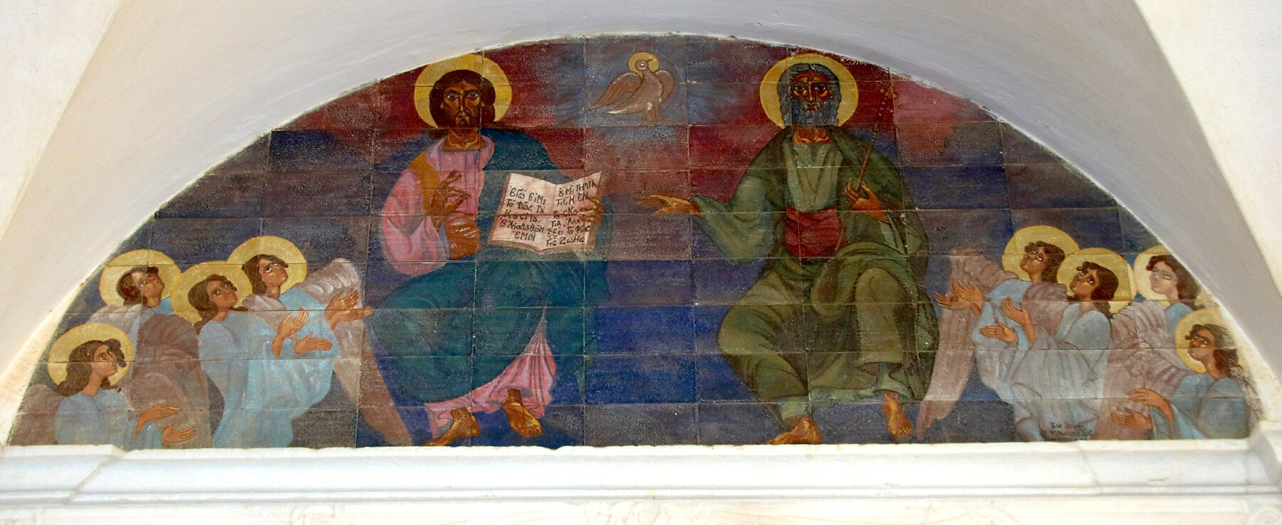 white Parian marble. It was started in 1830 and completed in 1835. The bottom picture is the fresco above the church entrance.
