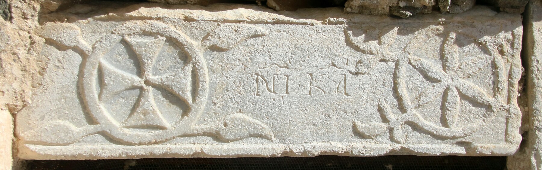 Above: Invocation to God on the Frankish Castle remains, most of which is now incorporated into homes.
