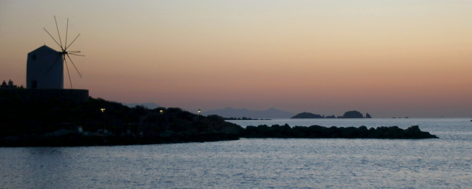 Above: Twilight by the second windmill on the Parikia coastal road.