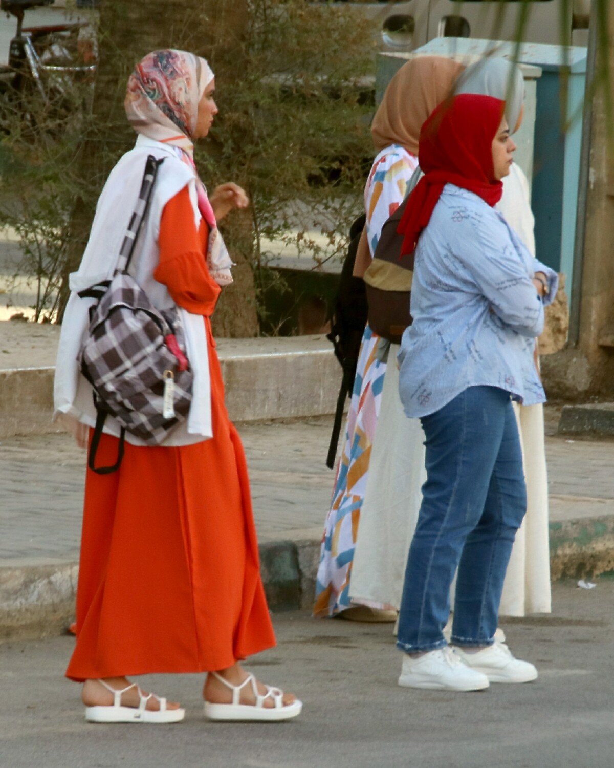 While Islamic texts asks women to dress modestly, but with no requirement to cover their heads, the majority I saw wore traditional outfits such as these, often