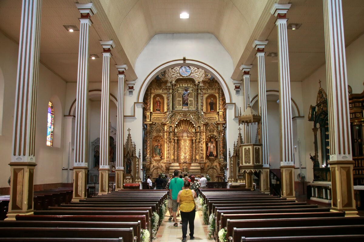 #1 the Golden Altar is at the front, a massive wooden carving covered in gold, the sole relic salvaged when privateer (pirate) Henry Morgan