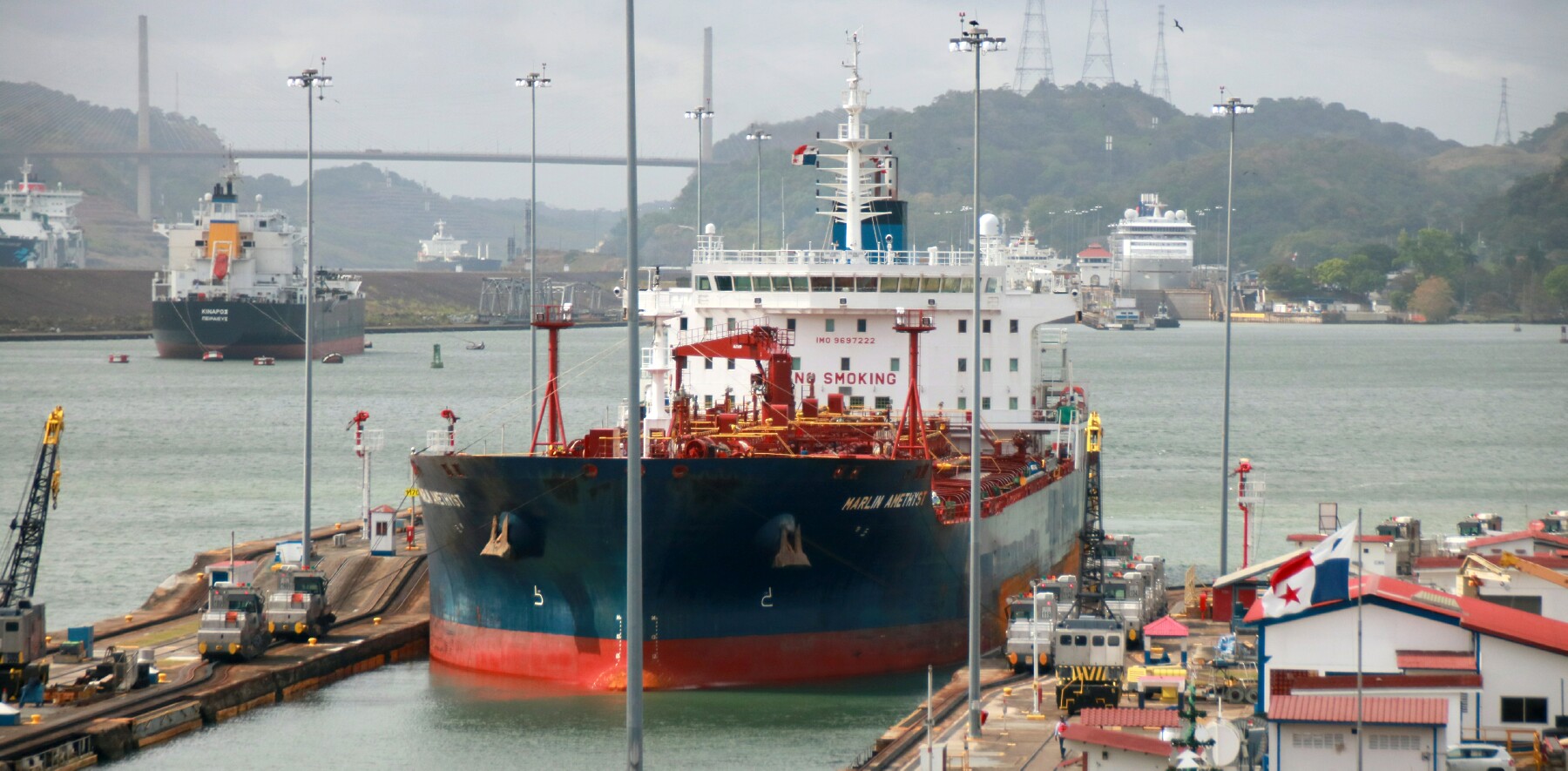 Above: The Marlin Amethyst enters the Miraflores lock from the northern end.