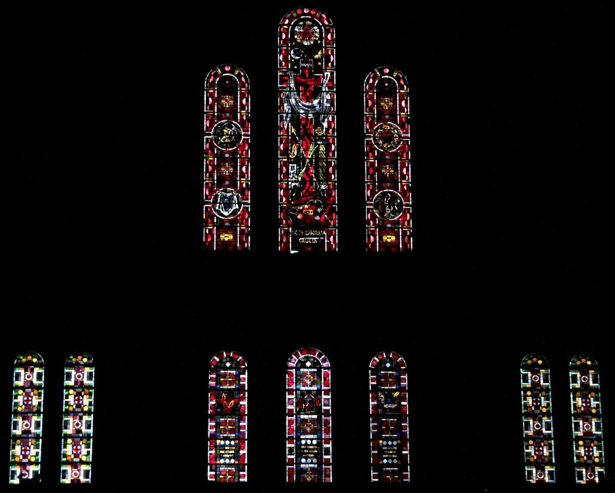 Below: Pictures 1 and 2, stained a glass windows on the east and west walls of the Basilica. There are