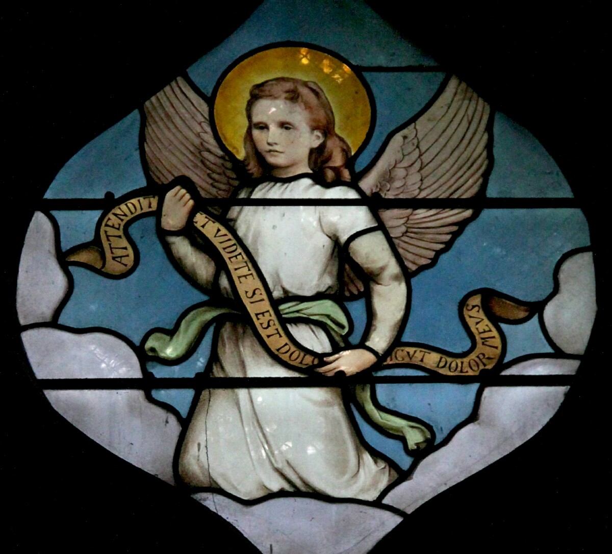 Below: Pictures 1 and 2 are fragment portions of a stained glass window on the southern side.