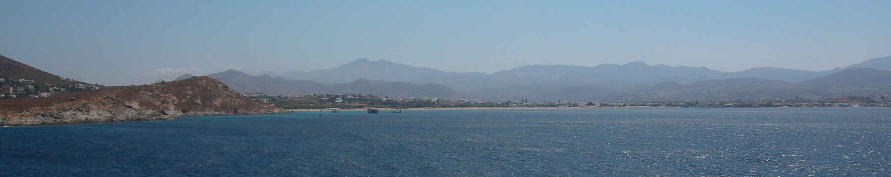 Above: The Sea Jet Champion 1 arrives from Athens to pick up the group in Mykonos, and then three views of Naxos ... the port town of Naxos, the Temple of Apollo, and the southwest coast.