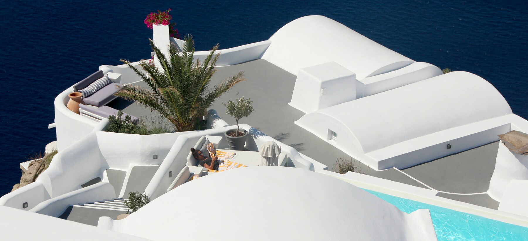 Above: Relaxing by a personal pool on of many cliff houses and hotels in Oia. Really hope there never is an earthquake of volcanic eruption in Santorini.